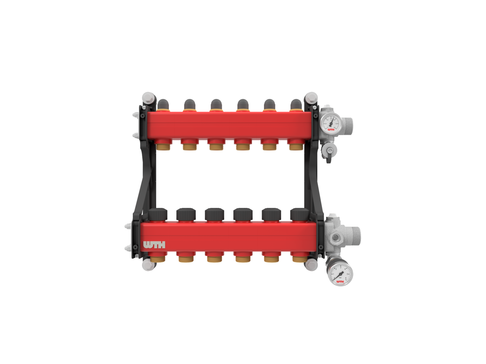 Met stevige beugels, ingegoten messing schroefdraad en een robuust kopblok. De dubbelwandig glasvezel versterkte groepsblokken hebben een isolerende werking en minimaliseren de condensvorming. Dit maakt deze verdeler geschikt voor verwarmen én koelen.